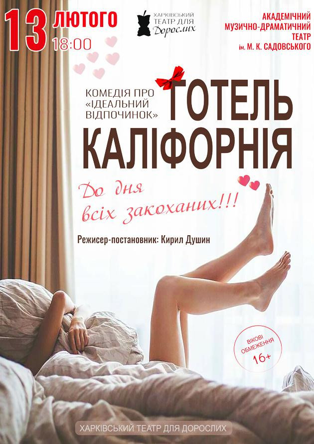 Подаруйте собі та своїм близьким вечір в шикарному номері готелю "Каліфорнія" та зустріч з неперевершеним ХАРКІВСЬКИМ ТЕАТРОМ ДЛЯ ДОРОСЛИХ!