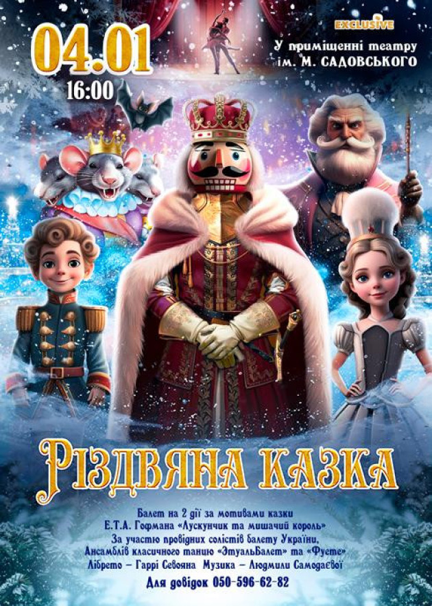 4 січня 2026 року у Вінницькому обласному академічному українському музично-драматичному театрі ім. М. К. Садовського відбудеться дитячий спектакль “Різдвяна казка”.
